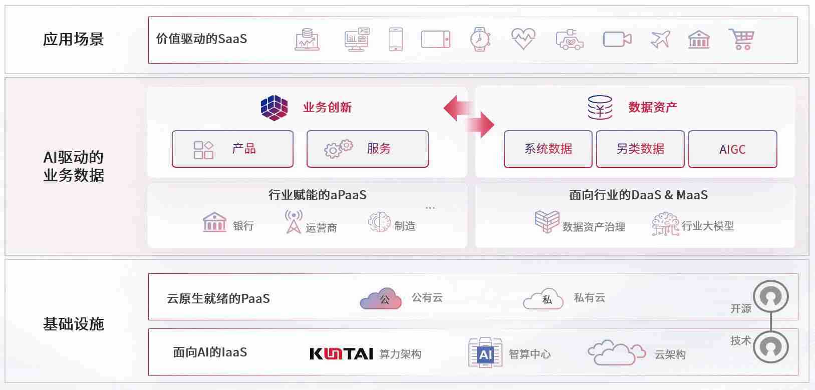 数字时代,,围绕企业数字化转型的关键要素,,z6com尊龙凯时数码开创性的提出数云融合战略和技术体系框架,,着力在云原生、、、、数字原生、、AI原生和信创产业上架构产品和服务能力,,,,为处在不同数字化转型阶段的快消零售、、、、汽车、、、、金融、、、、医疗、、、、政企、、、、教育、、、、运营商等行业客户提供泛在的敏捷IT能力和融合的数据驱动能力,,,,构建跨界融合创新的数字业务场景和新业务模式,,助力企业级客户建立面向未来的核心能力和竞争优势,,全面推动社会的数字化、、、智能化转型升级。。。